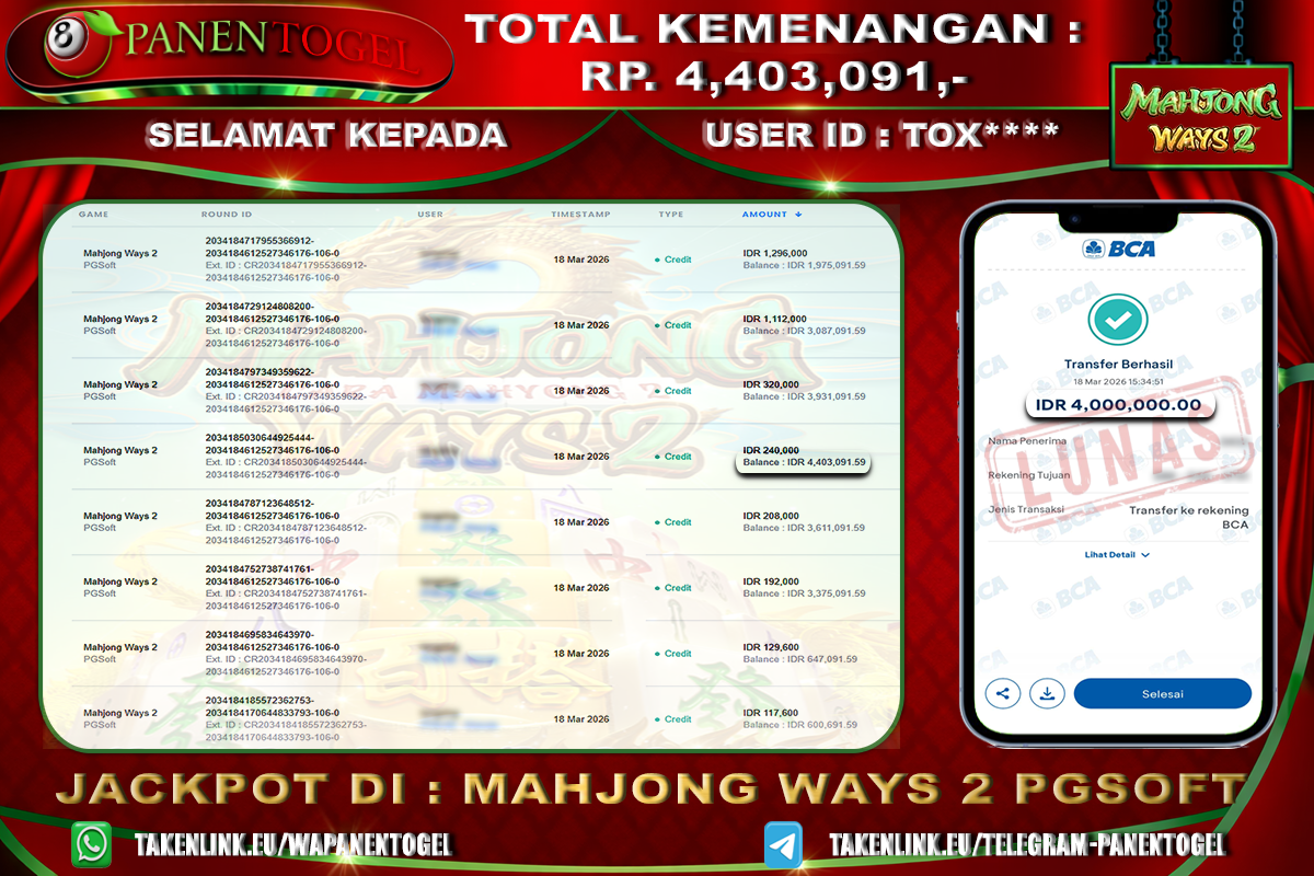 Update terkini bukti jackpot • Testimoni member • Bukti transaksi real dari toto togel online PANENTOGEL.