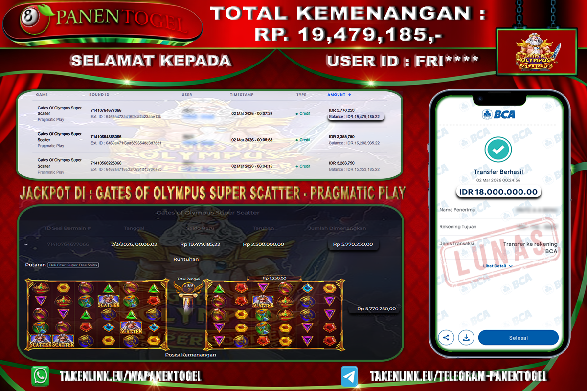 BUKTI KEMENANGAN SLOT PANENTOGEL Rp. 19.479.185, - LUNAS