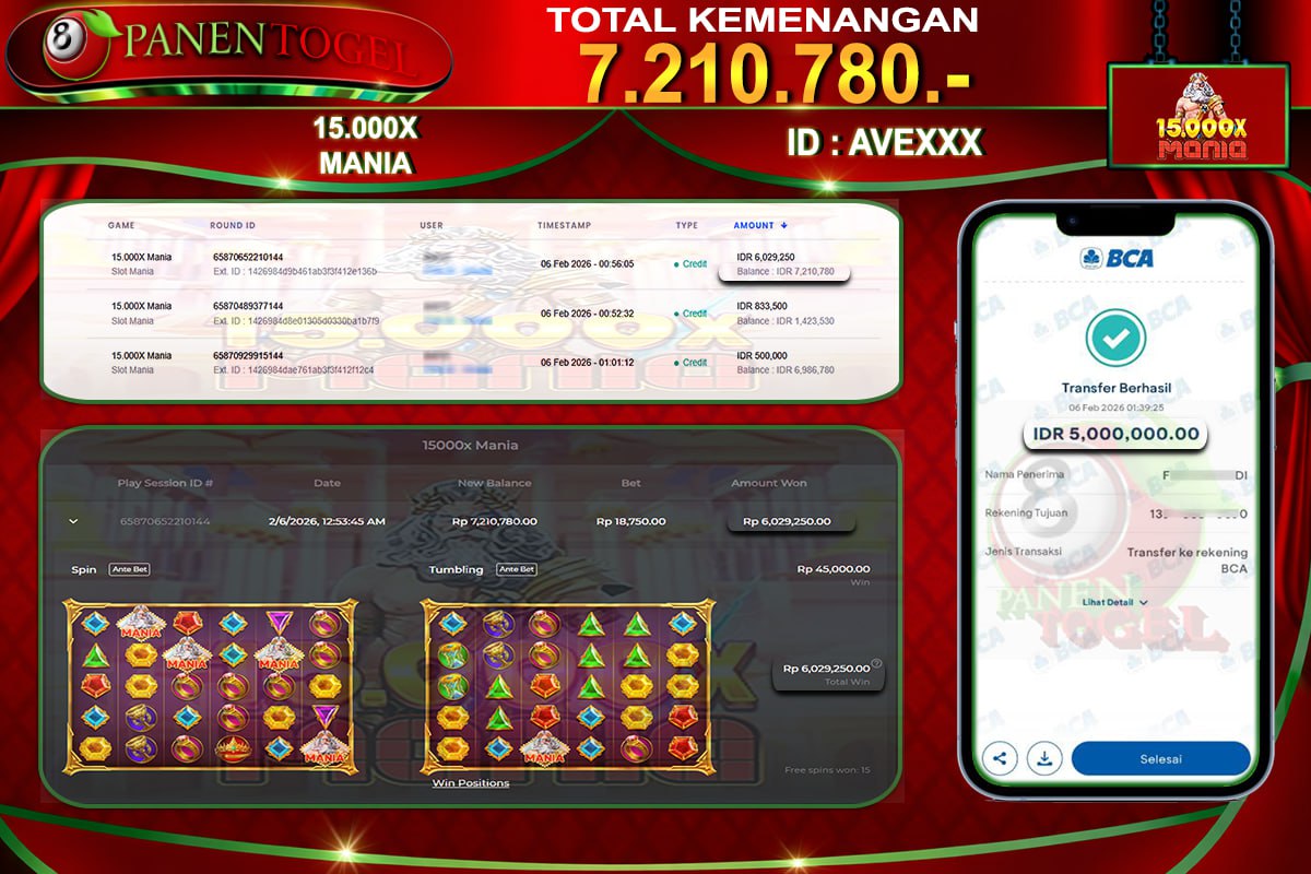BUKTI KEMENANGAN SLOT PANENTOGEL Rp. 7.210.780, - LUNAS