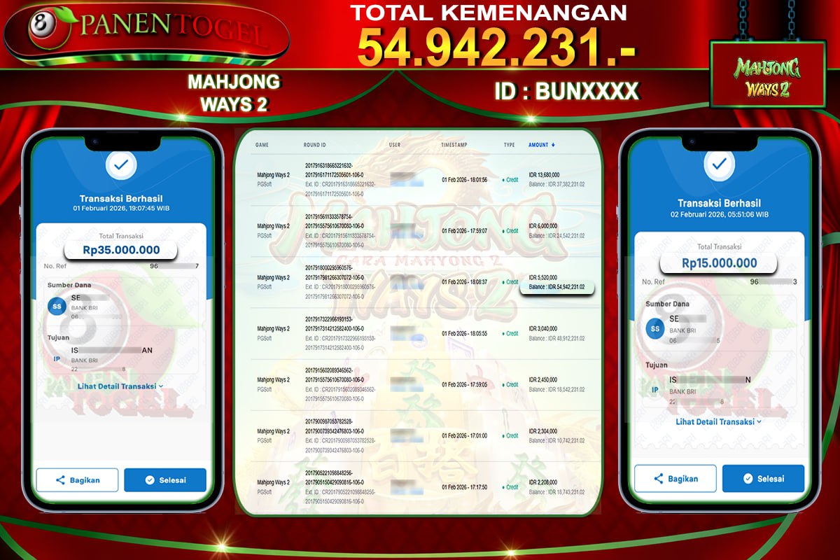 Selamat Kepada User ID : DBE**** Member PANENTOGEL JACKPOT MAHJONG WAYS 2