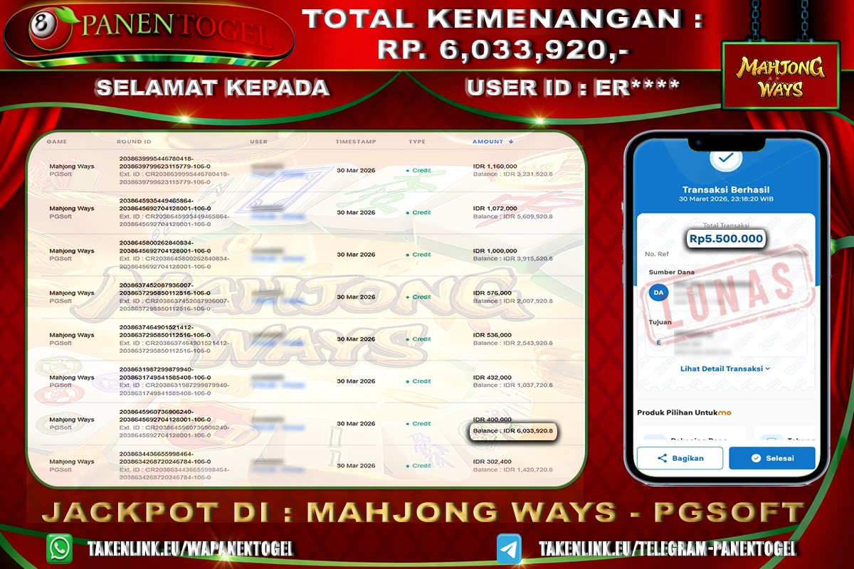 BUKTI KEMENANGAN SLOT PANENTOGEL Rp. 6.033.920, - LUNAS