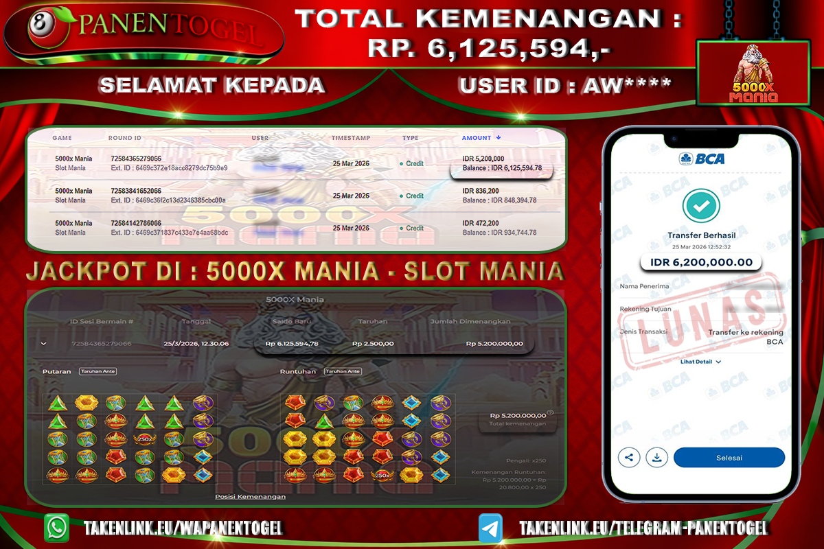 BUKTI KEMENANGAN SLOT PANENTOGEL Rp. 6.125.594, - LUNAS