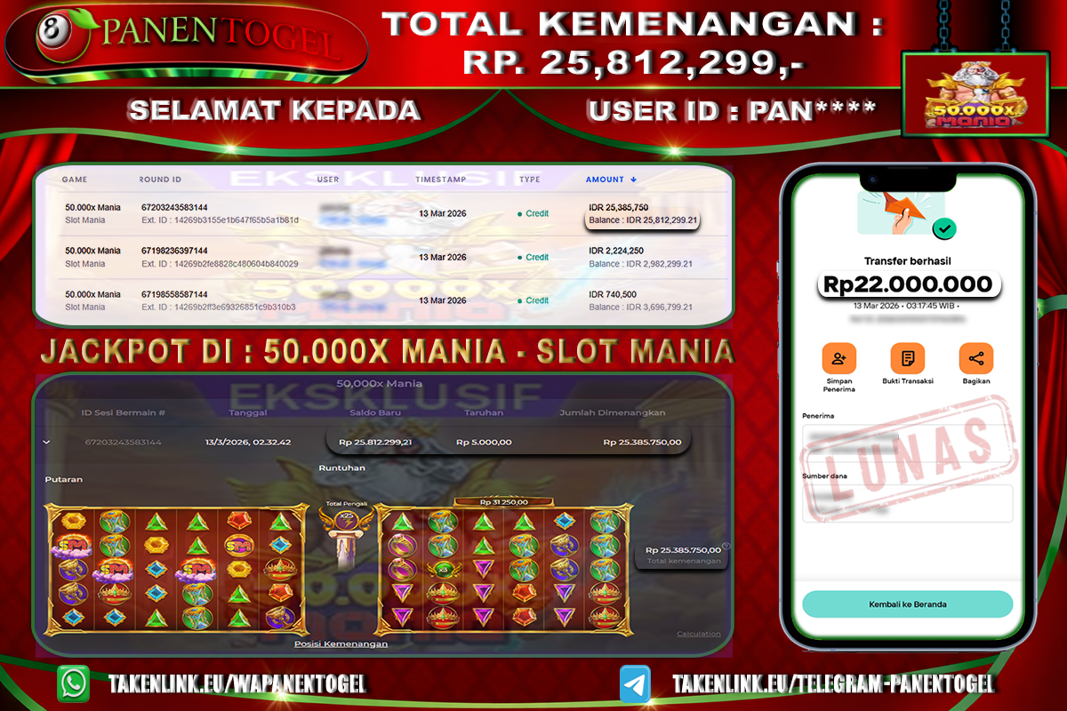 BUKTI KEMENANGAN SLOT PANENTOGEL Rp. 25.812.299, - LUNAS