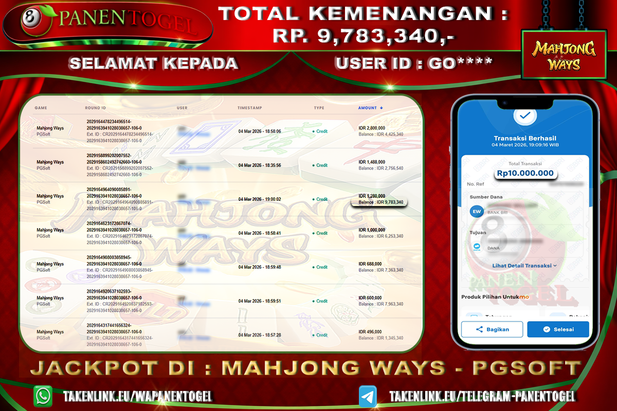 Update terkini bukti jackpot • Testimoni member • Bukti transaksi real dari toto togel online PANENTOGEL.