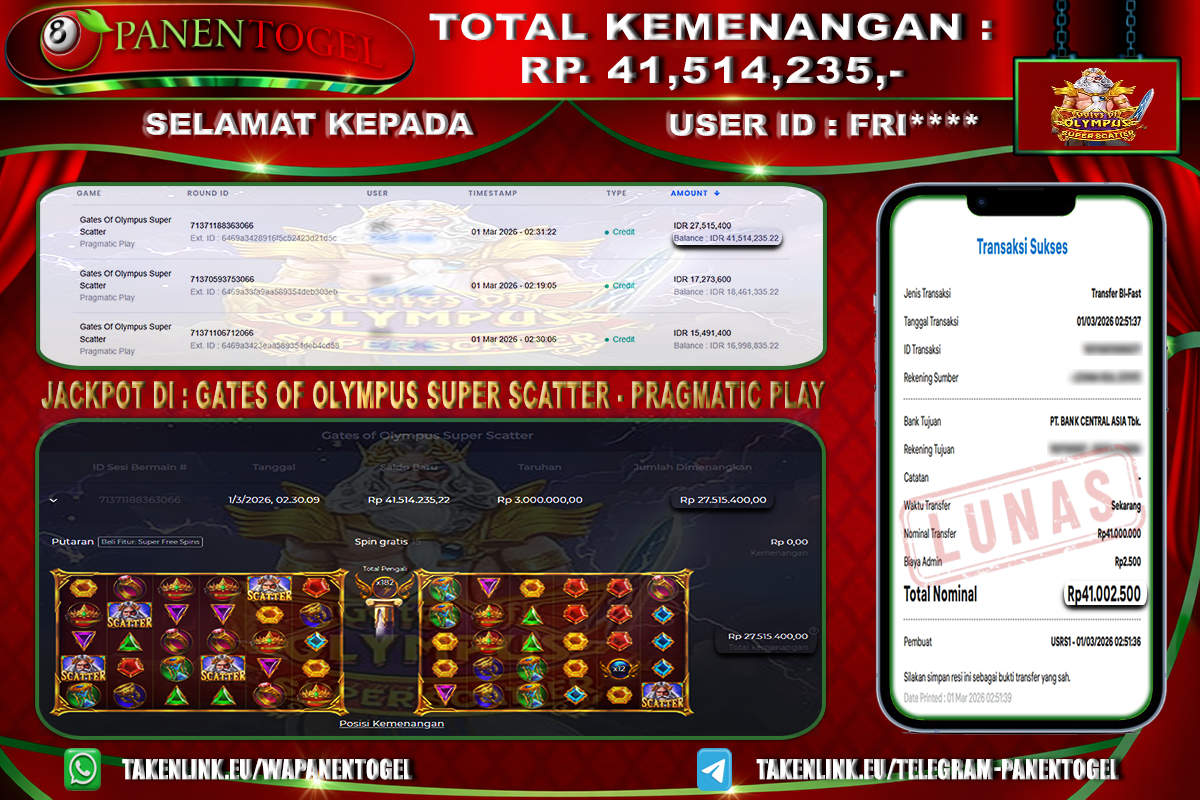 BUKTI KEMENANGAN SLOT PANENTOGEL Rp. 41.514.235, - LUNAS