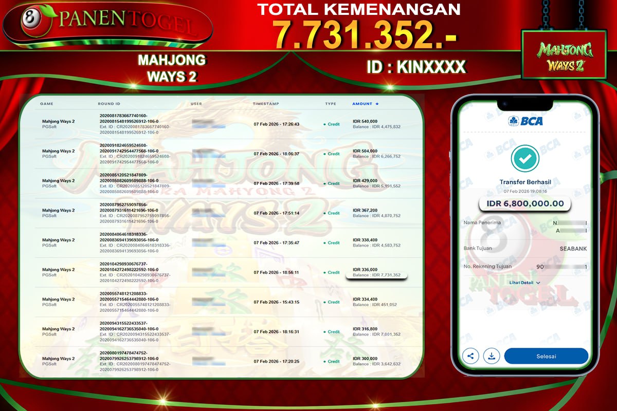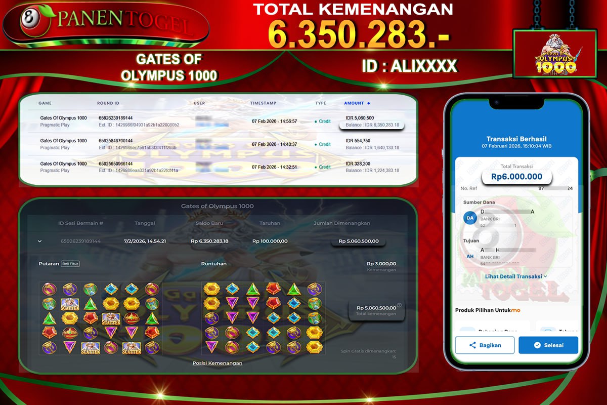 Beberapa situs togel online hanya menjanjikan tanpa ada bukti yang jelas, tapi di PANENTOGEL semua pasti terbukti dan jelas, bukti jackpot toto togel online gacor secara nyata. Melalui kemenangan member setiap hari nya, jackpot besar togel online 2D–3D–4D maupun jackpot besar slot gacor, hingga bukti transaksi kemenangan yang benar-benar masuk ke saldo member.