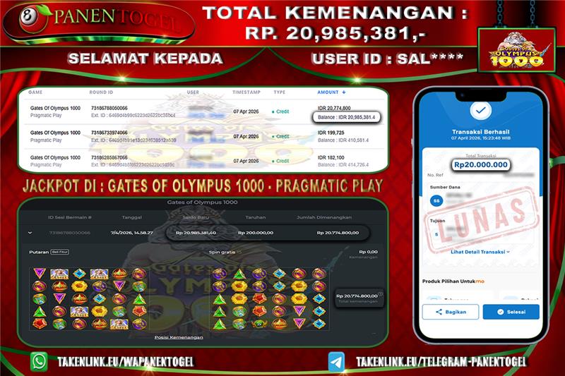 BUKTI KEMENANGAN SLOT PANENTOGEL Rp. 20.985.381, - LUNAS