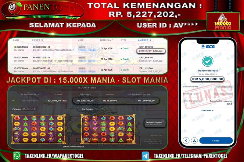 Beberapa situs togel online hanya menjanjikan tanpa ada bukti yang jelas, tapi di PANENTOGEL semua pasti terbukti dan jelas, bukti jackpot toto togel online gacor secara nyata. Melalui kemenangan member setiap hari nya, jackpot besar togel online 2D–3D–4D maupun jackpot besar slot gacor, hingga bukti transaksi kemenangan yang benar-benar masuk ke saldo member.